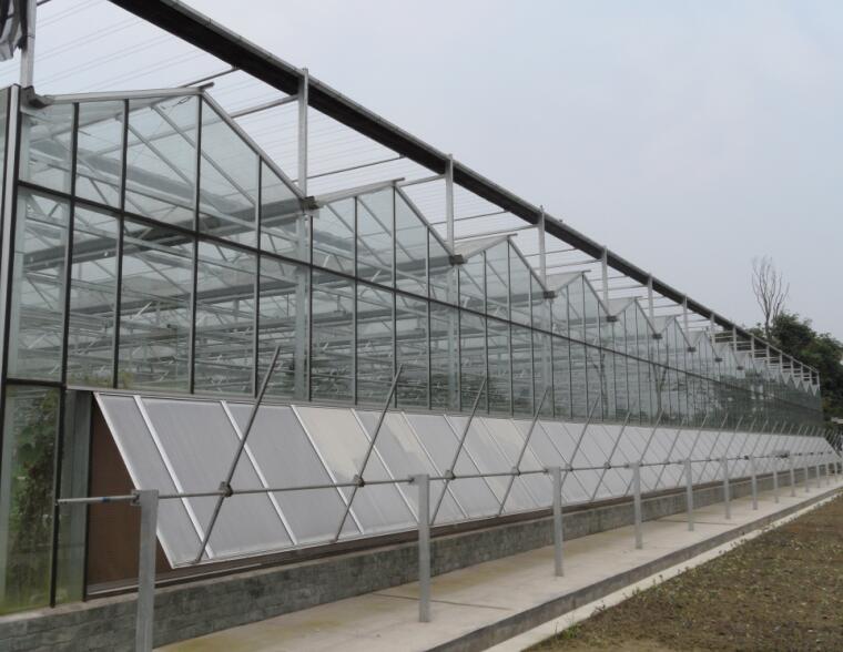 覆蓋材料為國產4mm或5mm厚浮法玻璃,其透光率〉90%。溫室頂部及四周為專用鋁型材。側面和端面也可采用單層、雙層或中空玻璃為覆蓋材料