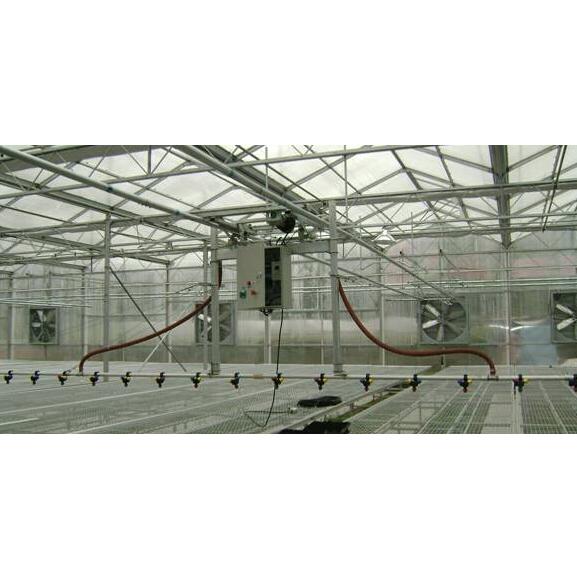 PG60ST型雙軌自走式噴灌機(jī)是我公司自行研制開(kāi)發(fā)的噴灌產(chǎn)品,該機(jī)型是美國(guó)進(jìn)口機(jī)型的升級(jí)換代版本,它集多年來(lái)設(shè)計(jì)經(jīng)驗(yàn)之積累,和廣大用戶的建議而成。它繼承了原來(lái)穩(wěn)定可靠的性能優(yōu)點(diǎn),又增加了新的功能。為使用更方便增加了無(wú)線遙控操作,使操作更方便。本機(jī)型的操作終端,由車上控制器和無(wú)線遙控器兩部分組成。車上操作盒上設(shè)置有正向運(yùn)行、反向運(yùn)行、停車、連續(xù)調(diào)速、連續(xù)噴灌、關(guān)左部水、關(guān)右部水。無(wú)線遙控器是車上操作盒的部分備份,無(wú)線遙控器有正向運(yùn)行、反向運(yùn)行、停車、開(kāi)水、關(guān)水。無(wú)線遙控器可減輕操作勞動(dòng)強(qiáng)度,遙控距離達(dá)100米??刂菩盘?hào)傳感器,繼承了國(guó)外用磁電傳感的優(yōu)良傳統(tǒng)。可保證信號(hào)傳感器具有超長(zhǎng)的使用壽命,久用無(wú)損。電機(jī)動(dòng)力驅(qū)動(dòng)部分,用先進(jìn)的工業(yè)變頻器承擔(dān)??刂扑俣确€(wěn)定,力矩平穩(wěn)。為了使系統(tǒng)便于使用,系統(tǒng)的電源采用了交流220V市電??刂葡到y(tǒng)采用正向、反向運(yùn)行或往返運(yùn)行,可以單獨(dú)或連續(xù)噴水,可以隨時(shí)遙控停車。本系統(tǒng)主要針對(duì)國(guó)內(nèi)用戶使用,性價(jià)比優(yōu)于進(jìn)口產(chǎn)品,可以節(jié)約勞動(dòng)成本,充分提高生產(chǎn)效率。