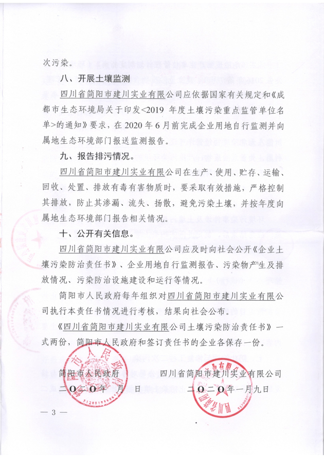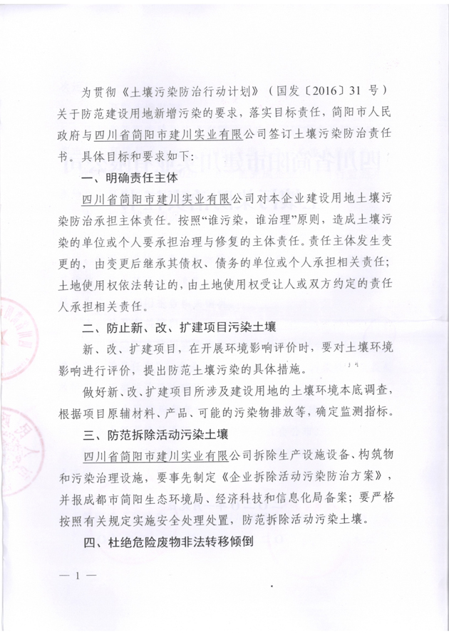 四川省簡陽市建川實(shí)業(yè)有限公司土壤污染防治責(zé)任書