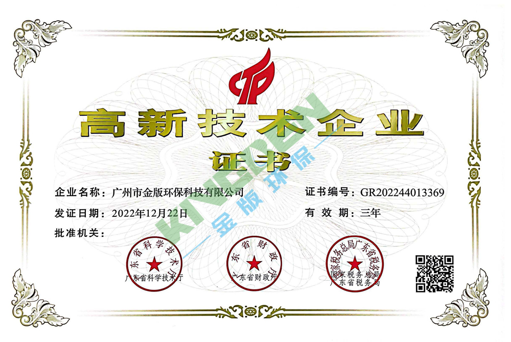 近日,廣州市金版環(huán)保科技有限公司榮獲“高新技術(shù)企業(yè)”稱號! 證書編號:GR202244013369,該證書由廣東省科學技術(shù)廳、廣東省財政廳、國家稅務總局廣東省稅務局聯(lián)合頒發(fā)。